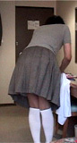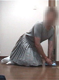 純子の定番、ギンガムチェックのプリーツミニスカートです。夏で暑かったので、この撮影の時はペチコートは重ねていません。スリップ一枚です。ストッキングはガーターベルトで吊っています。横座りのポーズは珍しいのでここに取り上げておきました。スカートの中で男性の特別な出来事が起こる映像から、静止画像を抜き出しました。甘くて、つらくて、そして屈辱にまみれた純子の気持ちをご想像下さい... |