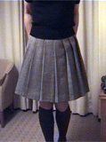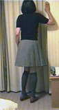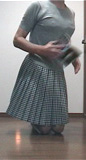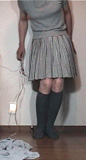 上と同じヘリンボンのプリーツミニスカート...撮影は2ヶ月ほど後です。冬になっていました。ペチコートを重ねています。このスカート姿で外出して来ました。上には男物の上着を着て出ました。スカート姿で外出して帰ってくると、からだがとても興奮しているのが分かります。スカート姿を見られることがとても刺激的だから...純子はその時のことを思い出して、あらためて興奮し直しています... |