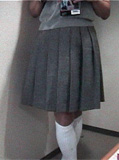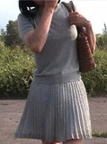 ヘリンボンのプリーツミニスカートです。裏地は純子が加工して、スリットを深く入れ直してあります。そのおかげで、タイトな裏地も脚捌きの妨げにならずに済んでいます。秋の撮影で、この時にはスリップの上にペチコートを2枚重ねています。読んでいるのはSM雑誌です。だから純子のスカートの中のからだはとてもつらい状態になっているの。時々自分でつらいからだを慰めていました... |