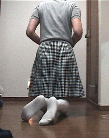 純子のスカート姿での後ろ姿です...貧弱なお尻なので、女性のお尻みたいに魅力的ではありません。