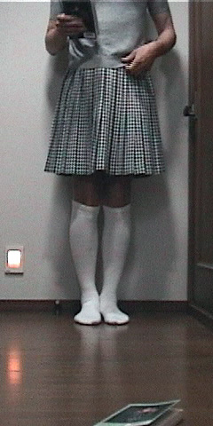 全身を映せる鏡の前に立ち、このスカート姿でいろいろなポーズを楽しんでいました。女性っぽいポーズや、