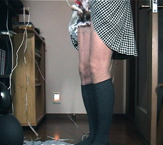 バイブレータの装着が完了しました。スカートを下ろして恥ずかしい秘密は隠します...