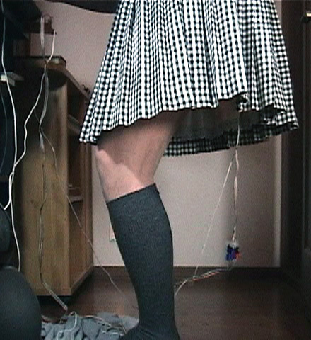 白いペチコートの奥でオレンジ色が映えています。肛門責め具のローターがオンになっている証拠です。
