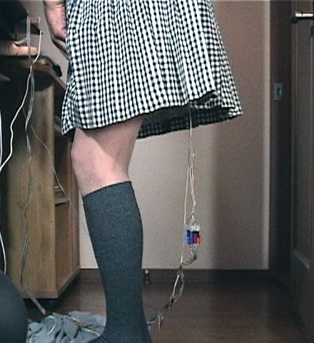 純子のスカートの中でバイブの苛めが再び始まりました。今度は、手淫の快感に耽ろうとした罰...お仕置き...