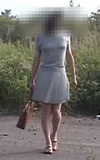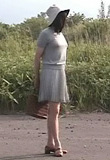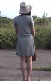 下の写真は、クリックすると大きくなります。広々とした郊外での純子のスカート姿をご覧下さいませ。