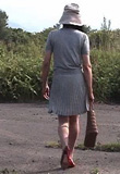 | 久しぶりにハイヒールを履いて撮影です。夏の雰囲気を出したかったから、軽やかなスカートに明色のトップス。 風景には海を選ぼうかと思ったんですが、スカートとは合わないので草原にしました。夏らしく帽子もかぶりました。 靴も、いつもの平底パンプスよりはハイヒールの方が足元が軽やかに見えるかな、って思って...細いヒールが... ハイヒールを履いた方が、歩く時にお尻が左右に揺れる幅が大きくなります。でも、拘束具みたいで、とても歩きにくいの。 ハイヒールにスカート...しかもタイトな裏地のプリーツスカート...純子、もうすっかり女性気分でした。被虐の欲望も...