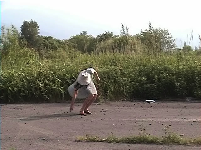 天気がよく風もあまりない静かでけだるい夏の日の午後の郊外で、スカート姿を愉しむ純子です。