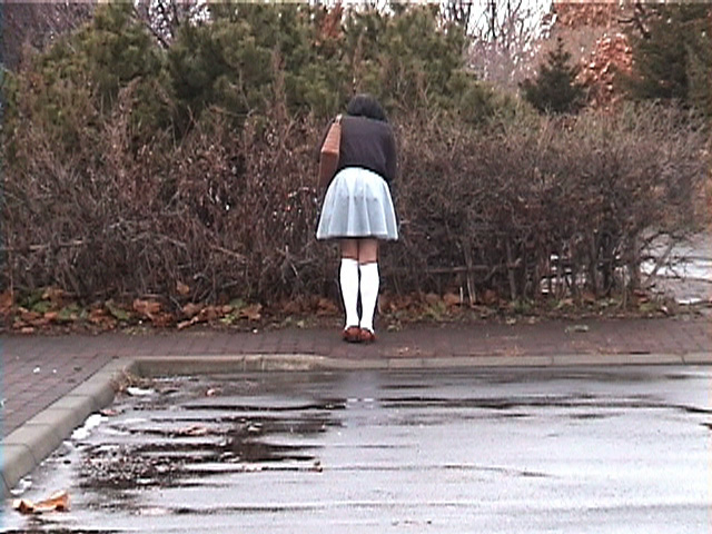 初冬の殺風景な色調の中、純子の白いハイソックスがとても眩しい...白いハイソックスも彩子さまに