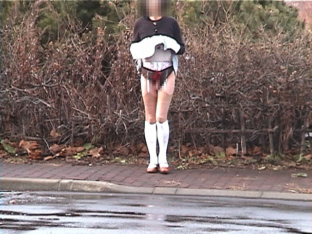 そんな野外でスカートを捲り上げ、ペチコートもスリップも捲り上げて、恥ずかしい秘密を晒しものにする快感!