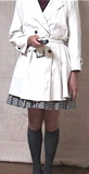 夜の撮影ですが、この格好から判断するに、きっと外出してきたのでしょう。気温も低いのでコートにハイソックスを合わせます。