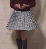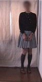 黒のアンサンブルも試してみました。さすがに脚にはハイソックスを...気分的にはとても安心! |