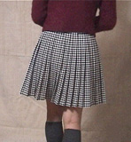 アップでの撮影...スカートの質感を感じ取って頂ければ幸いです。裏地なし、腰止めスティッチもなしの総襞スカートです。