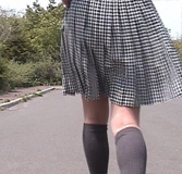 | 風がこわいのは、ほんとうはこのような広々とした場所ではないのです。こういう場所では、スカートが 風に押し付けられるだけで、からだの線が見えてしまうということはあるかもしれませんが、捲くれ上がることは ほとんどありません。こわいのは、こういう公園なら生垣沿いや停めた車の近くです。風が物体に反射して不規則な 方向に舞い上がるのがスカートにとっては最大の意地悪なの...同じことが町中でも起こります。むしろ、町中の 方がこわい...ビル風もそうですし、風を反射する多種多様な物体がありますから...スカートの大敵は町風! ところで純子は、このプリーツミニスカート姿で、今年(2011年)6月のある夜に町中を歩きました。 風が強い夜で、長い横断歩道を渡る時、信号待ちの車がランプを照射している中を歩いたのですが、 風でスカートが乱れてとても緊張しました。何とか渡り終えた所から、左に曲がってさらに歩き続けました。 この角には12階建てのマンションがあり、ビル風が吹きまくっています。驚いたのは、信号待ちの車の多さ! ヘッドライトが何列にもなって、純子の方を照らしています。純子は、下の服装で、いつものトートバッグを