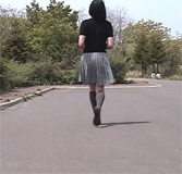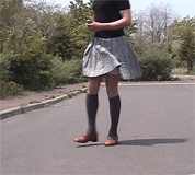 左肩に掛けてそれを左手で支えていました。顔にはマスクをしていたので、右手でスカートを 抑えることができました。でも、純子の目には、風に乱れたスカートの裾から肉色の太ももが、 実に生々しい光景として飛び込んできました。どの程度スカートが捲くれ上がって、太ももが どんなふうに露出しているのか、自分では分かりません。でも、延々と続くヘッドライトの中で、 純子は歩き続けなければなりませんでした。時間にすれば、10秒か20秒くらい...でも、 とても長く感じたし、きっと、車の中の人たちは暇だから、スカートを風に乱されて太ももを 晒して歩く純子をじっくりと見ているだろうなあ、って思うと怖くなってきました。誰かが 純子が男だと気づいて、車から降りて来るかもしれない...そう思うと、すっかり 怖気づいてしまいました。車列が尽きた後で振り返って安全を確認しました。 |