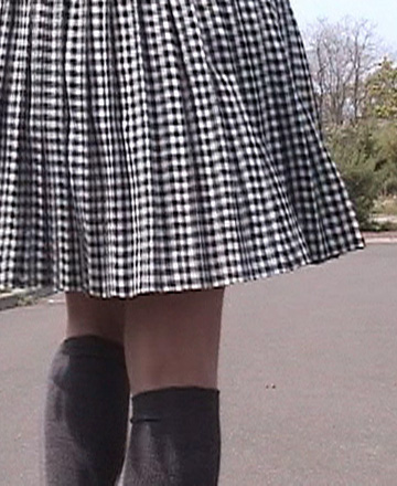 ところで純子は、このプリーツミニスカート姿で、今年(2011年)6月のある夜に町中を歩きました。