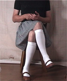 2008年10月の夜、純子がはじめて白いハイソックスをこのスカートに合わせた時の撮影です。