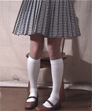 白のハイソックスはとても目立つから、夜の外出とはいえ、とっても緊張しました。靴のベルトも目立つし...
