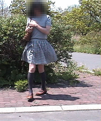 左肩に掛けてそれを左手で支えていました。顔にはマスクをしていたので、右手でスカートを 抑えることができました。でも、純子の目には、風に乱れたスカートの裾から肉色の太ももが、 実に生々しい光景として飛び込んできました。どの程度スカートが捲くれ上がって、太ももが どんなふうに露出しているのか、自分では分かりません。でも、延々と続くヘッドライトの中で、 純子は歩き続けなければなりませんでした。時間にすれば、10秒か20秒くらい...でも、 とても長く感じたし、きっと、車の中の人たちは暇だから、スカートを風に乱されて太ももを 晒して歩く純子をじっくりと見ているだろうなあ、って思うと怖くなってきました。誰かが 純子が男だと気づいて、車から降りて来るかもしれない...そう思うと、すっかり 怖気づいてしまいました。車列が尽きた後で振り返って安全を確認しました。 |