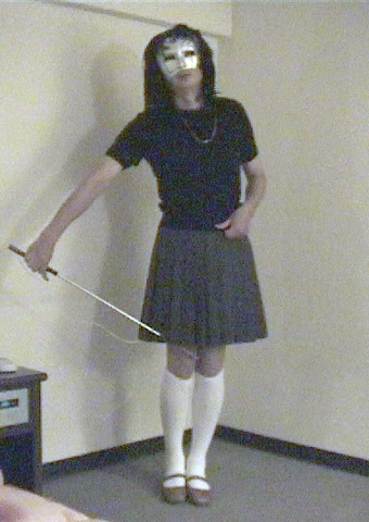 ひざまずかされたり、四つんばいの姿勢を取らされます。スティックをスカートの裾に当てられる時の屈辱と不安...