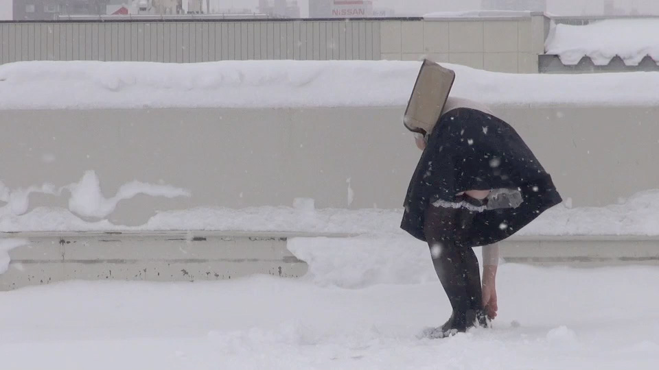 雪の上をスカート姿で歩く時の気分を、これをご覧の皆さまも味わってみて下さい。雪の下は氷です。この動画の