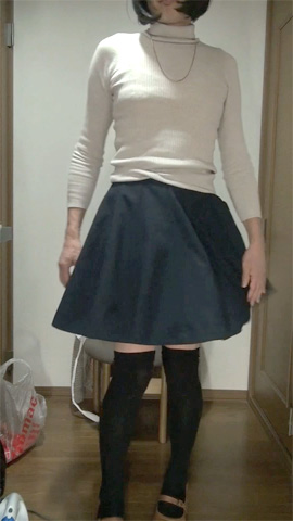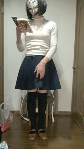 ここ数日の毎晩の服装です。スカートの下にはシフォン2段50cm丈の白ペチコートだけ。パンティも穿いています、最初は...