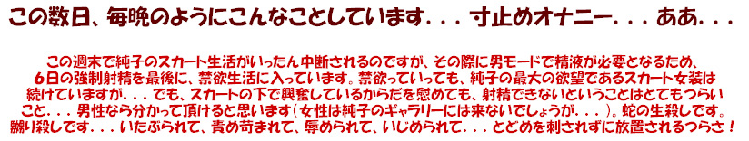 ああ...射精の快感...もう許して欲しい...寝る時間が来るまで、こんなことの繰り返し...スカートの感触も...
