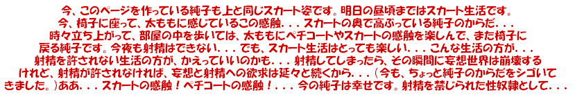 今もこのページを作りながら、スカートの感触を太ももの肌に感じています...うーん、ペチコートかな?...