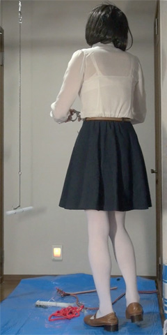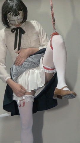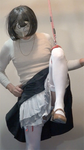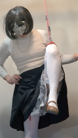 この夜は最初、わざとフェミニンなボウタイ・ブラウスにしました。その方が片脚吊りをよりつらいものにするから... ![]() 後ろ手に手錠をかけられ、片脚を吊られたつらい姿勢を取らされる純子。辱めが待っています。拷問が...折檻が... ![]() この夜はパンティもわざと白いスキャンティに...こういう責めでは、股割れパンティ以上に恥ずかしいでしょ?うふふ... ![]() 太ももやお尻をスパンキングパッドで責められる純子...性器を嬲られる純子...ひどい...こんなブラウスなのに... ![]() 見られるのは前からだけじゃないわよ。横からも、後ろからも、四方からその恥ずかしい格好を見られなさいッ、純子! ![]() さんざんいたぶられたあとで許された純子です。ボウタイ・ブラウスに紺のフレアースカート、白いストッキング...何事もなかったかのようなふつうのフェミニンな純子です... ![]() タートルのニットに着替えて、あらためてこの辱めを受ける純子です。この方が両手を手錠で吊り上げるのに都合がいいから... ![]() こんな不自由な姿勢でスカートを捲り上げられて、下着を検査される純子。ペチコートが1枚ずつ剥かれて行きます... ![]() ああ...これ以上はお許し下さい...片脚を吊り上げられる拘束感...とても被虐的です。からだの敏感なところを晒して... ![]() この動画では、純子の恥ずかしい拘束姿勢だけでなく、 この姿勢でスパンキングを受ける音もお楽しみ下さい... |