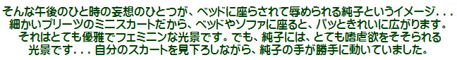 今日一日のスカート姿でのドライブと、ホテルの部屋でのスカート姿の生活...その純子のスカート姿で、
