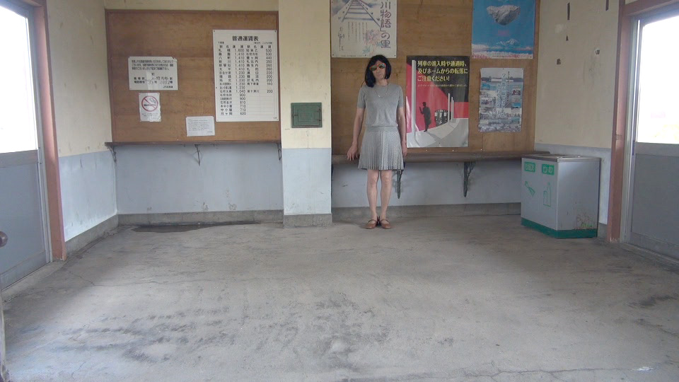 純子はこの日、こんなスカート姿。無人駅の待合小屋にこわごわと入ってみました。誰もいない室内にパンプスの音が響きます。 ![]() ここでなら服を脱げるわ...そう確信しました。急いでスカートを脱ぎ、半袖ニットを脱ぎました。その様子は動画に映っています。 ![]() ![]() 今回、新しく追加しました...[2013.10.22] ああ...こんな所で...いつ誰が突然入って来るか分からないこんな所で...スリップ1枚に剥かれて撮影を受けるなんて... ![]() 純子は顔を上げさせられました。恥ずかしい格好を写される時は、顔を晒しものにされるのが一番の辱めだから..ああ、つらいわ.... ![]() 誰かが来ないか、窓から窺うスリップ姿の純子です。性奴隷の純子に靴は許されませんでした。ひんやりとした屈辱の感触... ![]() スリップの裾が気になります。レースでまつられたスリップの裾は、純子のからだの秘所を守る最後の砦だから..どんなに短くても... ![]() ![]() 純子に与えられた罰は、駅の待合室とぷラットホームでスリップ姿を撮影されること...でも、ホームに出るのはとても怖かったの... ![]() やっぱりホームには出ることができない...恥ずかしすぎるわ。でも、出ないとだめよ。それがあなたの罪を償うための罰なんだから... ![]() 待合室ではなんとかスカートを脱いでスリップ姿になれたけど、ホームに出るのはどうしてもためらわれた純子が映っている動画は 下のボタンを押してご覧になって下さいませ。スカートを脱ぎ、上も脱ぐ様子が映っています。純子の公開ストリップ...スリップ1枚に 剥かれて行く純子をどうぞお笑いになって...皆さまの憂さ晴らしのおかずになさって下さいませ。それが純子の幸せなのですから... いよいよプラットホーム上に三脚でカメラを設置して、撮影の準備ができました。まずは風に弄ばれる純子のスカート姿を撮影です。 ![]() さっきの駅で突然現れた女性が、純子のトラウマに...誰か来ないかビクビクしていました。でもそのスリルも官能的ではありました... ![]() 今回、新しく追加しました...[2013.10.22] ![]() 自分の羞恥心を自分でいじめ弄ぶ純子のスカートを、ホームを通り抜ける風が意地悪に乱れさせました。風がからだに伝わって... ![]() ああ...もう許して...ダメなのね。奴隷は許されないのね。ああ...スカートを脱ぐ時が来たみたいです。もう後はありません... ![]() ![]() ![]() こんな所で...こんな格好で...純子、とうとうここまで墜とされてしまったのね...いつか全裸でここに立たされるのかしら?ああ... ![]() 駅名看板に隠れてないで、きちんと気をつけ!こっちを向きなさい!...はい、皆さま...これでよろしいでしょうか?これで許して... ![]() 純子はドキッとしました。後ろでなにか気配...両肩を剥き出しにして裾がとても短いスリップ姿は男からも女からも攻撃の対象に... ![]() あの踏切を車が通っているわ...見られていたのかしら?純子は怖くなりました。慌てて待合小屋に戻る純子です。捕まえられるの? ![]() ![]() プラットホームでスリップ姿を撮影する純子です。ホームを通りぬめる風が純子のスカートを揺らせて、その振動が、直接、純子の からだの敏感な部分に伝わりました。なぜって、この日、純子のスカートの中では性器が、赤いロープの股縄と2つの「奴隷リング」で 責められた上、股割れパンティで剥き出しになっていたのです。ちょっとした動作でもスカートとスリップで性器先端が擦れてしまって... ![]() ![]() ![]() ![]() ![]() ![]() ![]() ![]() 上の撮影の時も風が吹いていて、純子のスカートを容赦なく乱れさせました。その時の動画を今回、新しく追加しました...[2013.10.22] 最後の駅でもスリップ姿を撮影しました。ここは椅子が並んだ待合室...皆さまの前にスカート姿で引き据えられた純子という妄想... ![]() 無人駅とはいえ、住宅から近い駅です。ビクビクしながらスリップ姿になりました。パンプスがとてもよく響きます。純子は興奮して声を... ![]() めぐみさま、皆さま。どうも申し訳ございませんでした。どうぞ、これでお許し下さい...口に出すとますます高ぶって行く純子でした... ![]() アップでもう一度撮影。ああ...どこまで純子は辱められるのかしら。外が怖い。見つかったらこの格好で警察へ連行されるのかしら? ![]() 駅の待合室で晒しものにされる純子のスリップ姿です。罰として晒し・みせしめの辱めを受けている純子です。どうぞいじめて下さい... ![]() ほんとに申し訳ございませんでした。純子は今こうして罰を受けています。どうぞ、もうこれでお許しを...心から反省している純子です。 ![]() 無防備なスリップ姿...誰かに捕まえられたら、きっと純子、ウシロを犯されるわね。前を手でシゴかれながら、お尻をぶたれながら... ![]() この椅子に並んで座る皆さまの目の前で、スリップ姿の純子は交代で凌辱され、苦痛と屈辱でゆがむ顔を晒しものにされるのね... ![]() スカート姿のお客さまの足元に四つん這いにされウシロを犯される純子...脚で顔を上げさせられ辱めにゆがむ