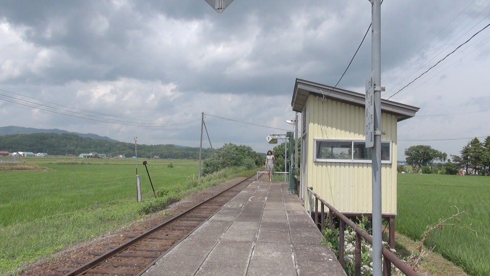 ここは三番目に立ち寄った駅。ほんとに田んぼの中にポツンとある駅で、どこからでも見えてしまうプラットフォーム。それでいて、周りに人影は皆無。遠くに車らしいの音が聞こえる以外は、