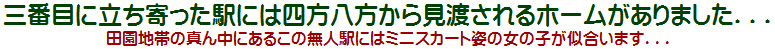 この駅が一番開放感を感じた駅でした。待合室に入ることもありませんでした。田園風景がとても楽しくて、そこから自分を隔離しようとは思いも寄らなかったんです。もったいない、というか、