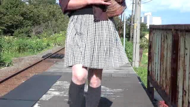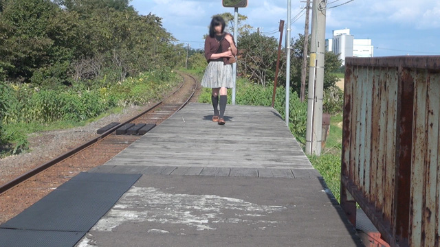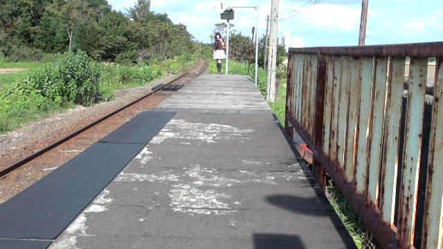 写真右方向には国道が走り、車が頻繁に通ります。遠くから見れば、ホームをスカート姿の女性が歩いているように見える?
