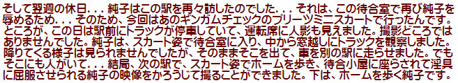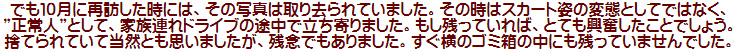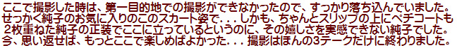 この撮影の後、純子は待合室になっている小屋に入りました。広い空間と狭い空間と、どちらがほんとうに怖いかしら...