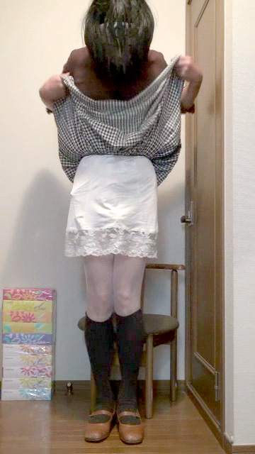 白いストッキング...そして、スカートの下にはペチコートなしでスリップ1枚だけ...あまりに無防備な純子の下半身...責められます...
