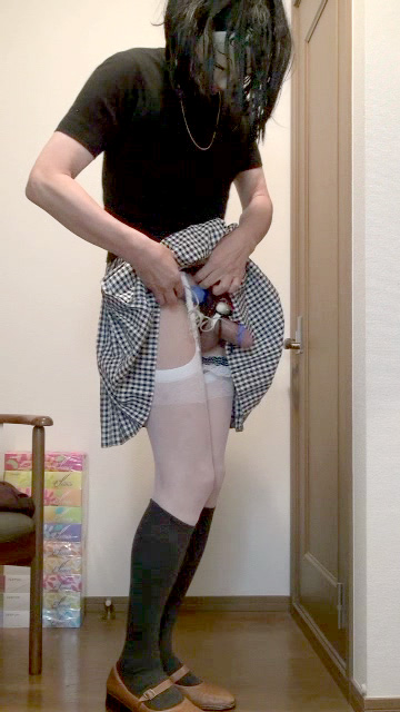 純子の性器に装着された青い淫具...コントローラーもスカートの中に隠されてしまいました。