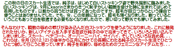 白いストッキングに気をよくして、白いサイハイも新たに買いました。いつかその写真もアップできればいいな、と思っています。