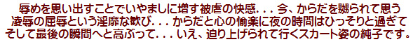 スカートの下、純子のからだを迫り上げるのはバイブレーターではなく、意地悪な純子の手...