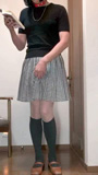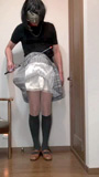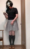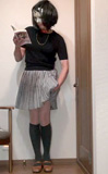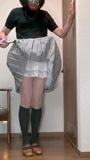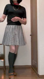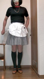 白いミニエプロンで純子のプリーツスカートを隠す?...