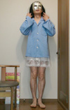 首輪を嵌められている純子と嵌められていない純子は、別の日の撮影です。寝る時はスリップにパジャマのシャツを着ました。上の真ん中は目覚めた朝の撮影です。 |