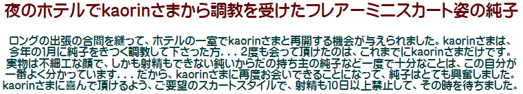 kaorinさまは、純子のスカート姿をじっくりとご覧になったあとで、「いいですねえ」というような意味のことをおっしゃいました(純子は興奮していて、