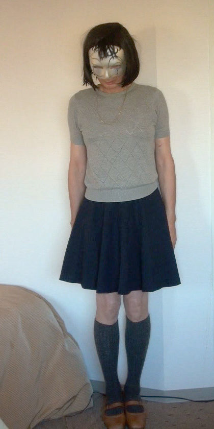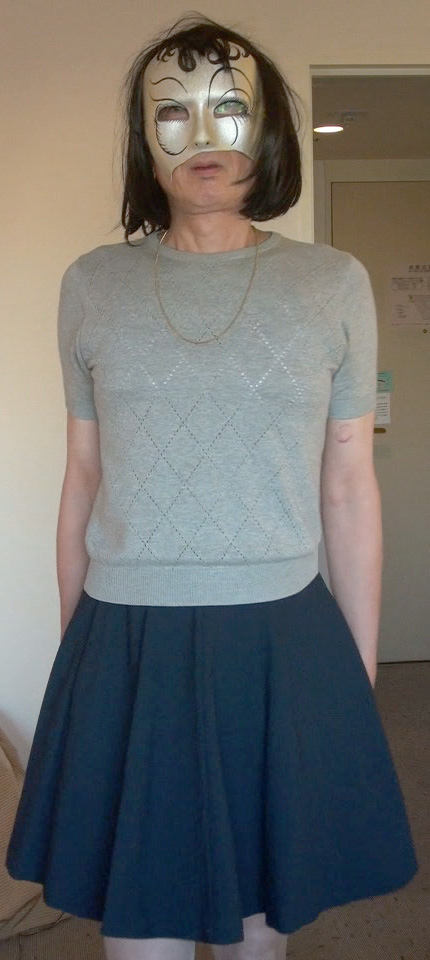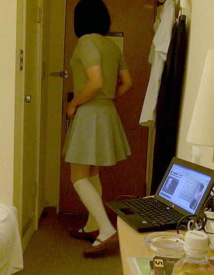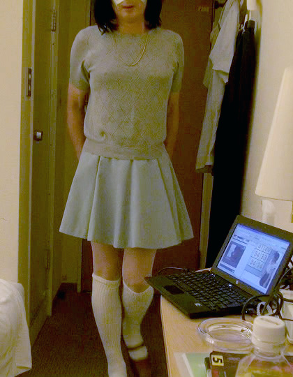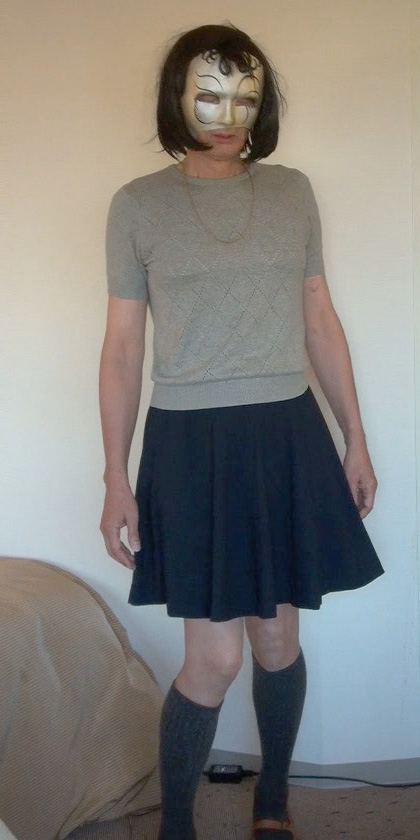 この年もkaorinさまを待ち焦がれる純子です。この時はその年初のスカート生活で着用していた紺色のフレアーミニスカートでした。