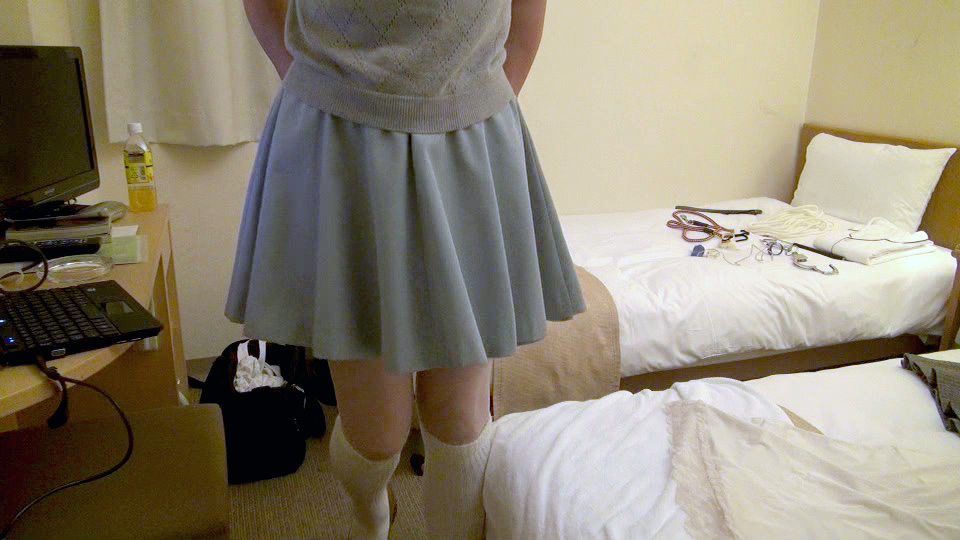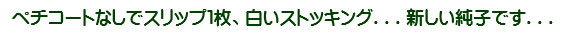 スカートの下には、これも新しく入手したペチコートを重ねています。でも、性器が剥き出しになっているのは前年と同じです...スカートを下から覗かれる恥ずかしさ...