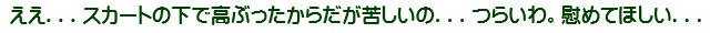 ああ、また...スカートを捲り上げさせられて...調教が始まりました。性器をお口でいたぶられる屈辱の調教...まるで陰惨な拷問だわ...