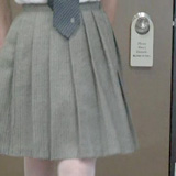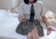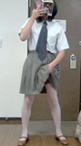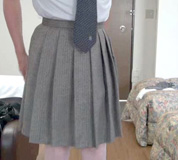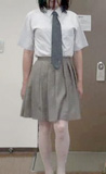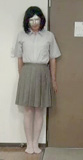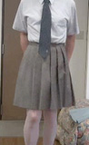昨晩とちがって、いかにも朝らしいカチッとしたプリーツミニスカート...夜の調教を想像しながら、朝から被虐の情感に浸りきって、スカートの中を濡らす純子です...
