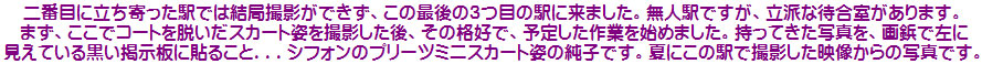 この駅に貼ってきた純子の写真は下の2枚です。画像をクリックすると、大きくなり、説明文もお読み頂けます。