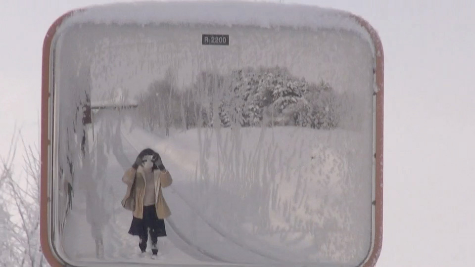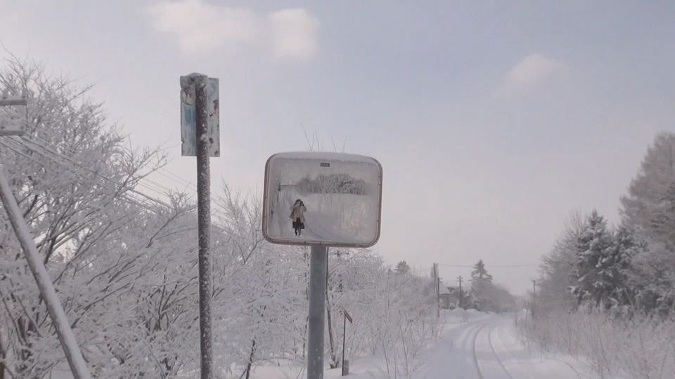 あのミラー...ああ、写っているわ!スカート姿の純子...吹雪に吹きつけられて凍った雪のミラーの中に...