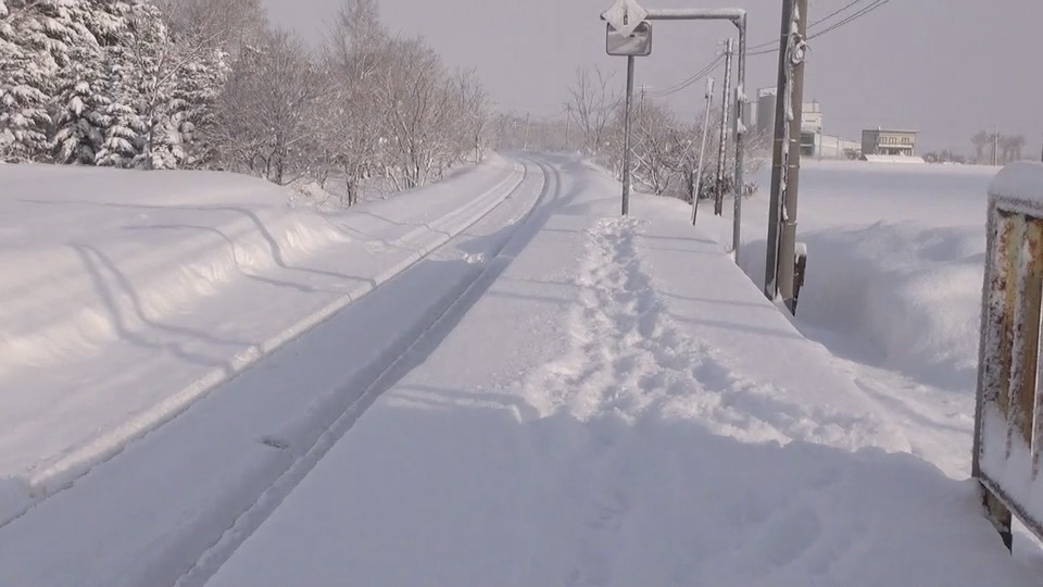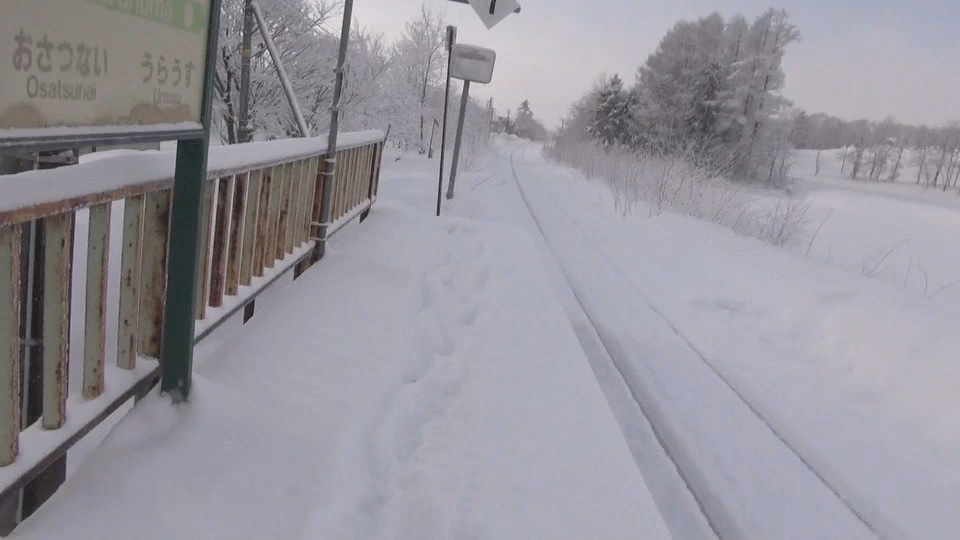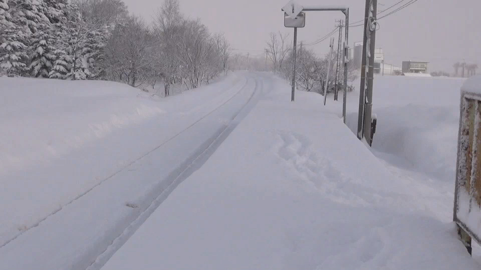 この日、まだ誰も歩いた跡のない新雪を踏んで、JRローカル線の無人駅を歩きます。