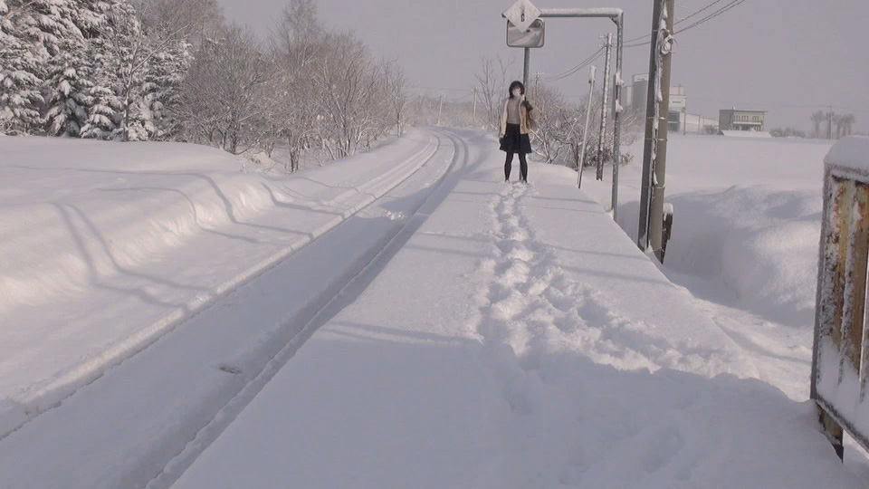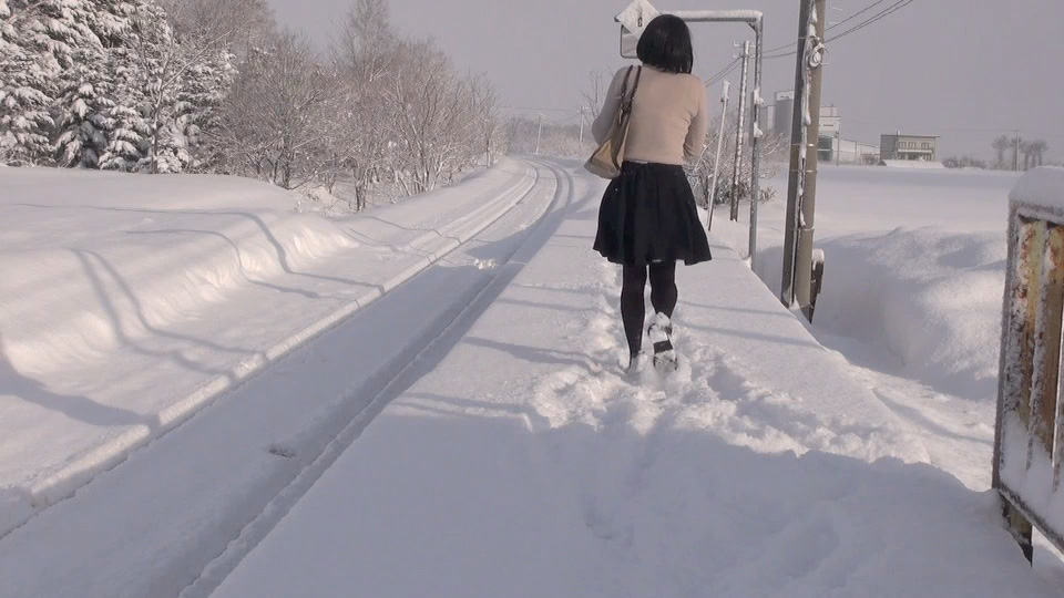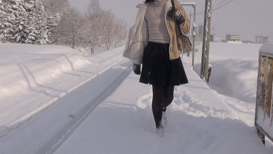 処女雪の上をスカート姿の純子がさんざん荒らし回った跡...蹂躙と辱めの記憶...雪は純子のスカートの中を知っている!