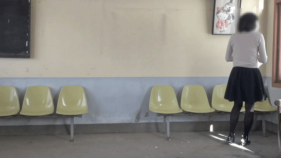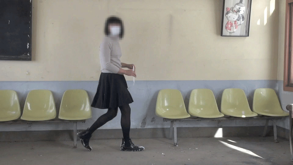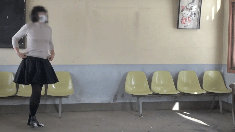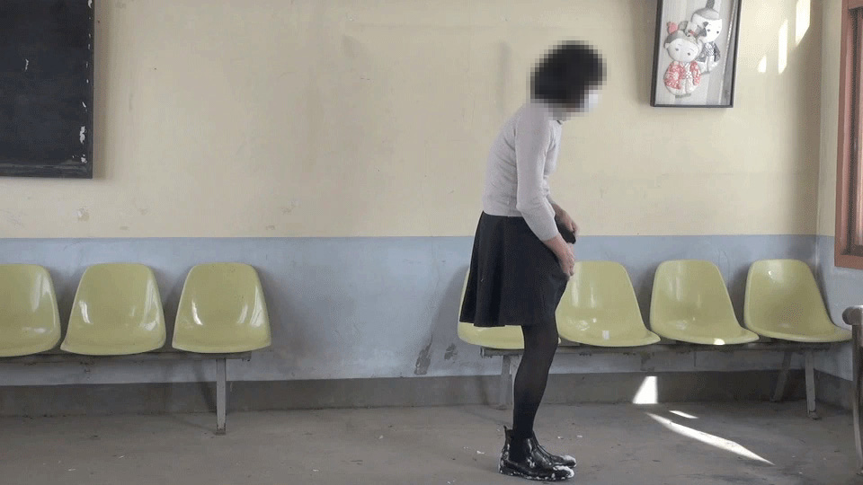 今日も誰もいないこの待合室...純子が恥ずかしい罰を受ける場所に、またやって来てしまいました...